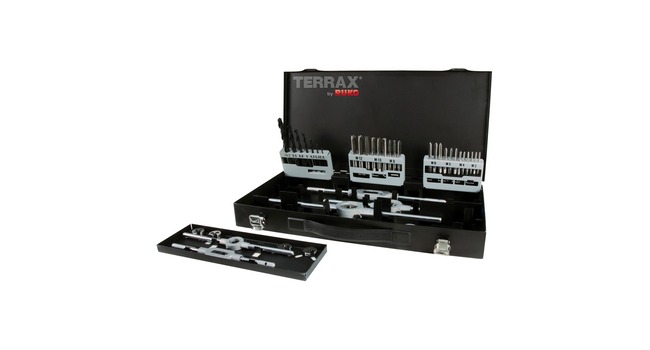 TERRAX kierretyökalusarja M3-M12 44-os. HSS. 44-osainen sarja. Koot M3-M12. Materiaali HSS.