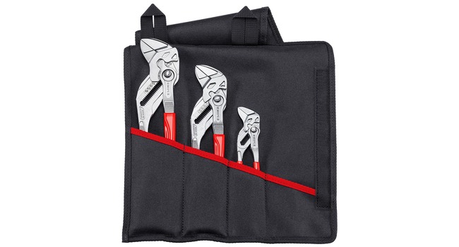 KNIPEX Jakoavainpihtisarja 150/250/300. Käytännöllinen, kulutusta kestävä polyesterikangas suojaa työkalujasi. Koukku- ja lenkkikiinnitys pitää ne helposti ulottuvilla. Sarja koostuu kolmesta eri kokoisesta pihtijakoavaimesta. Ohuet muovipintaiset kahvat. Kaikkien KNIPEX-pihtijakoavainten tavoin sileät ja samansuuntaiset leuat mahdollistavat tarttumisen tiukasti mutta samalla hellävaraisesti – myös kromattuja käsiteltäessä. Toimitukseen kuuluu: 1 x 86 03 150, 1 x 86 03 300, 1 x 86 03 250 avainpihdit.
