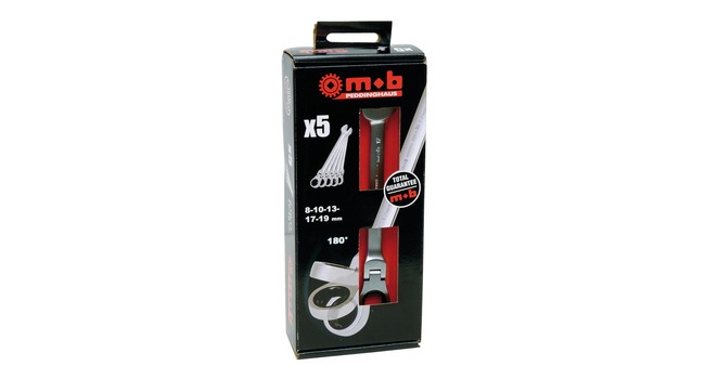 PEDDINGHAUS räikkälenkkiavainsarja. Nivelmalli. Nivelen liikkuma-alue 180°. 5-osainen sarja sisältää: 72-hampainen räikkä Koot: 8-10-13-17-19mm