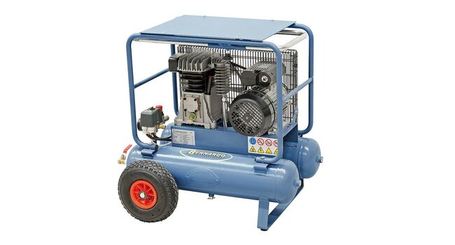 Laadukas pyörillä varustettu rakennus- ja teollisuuskompressori.