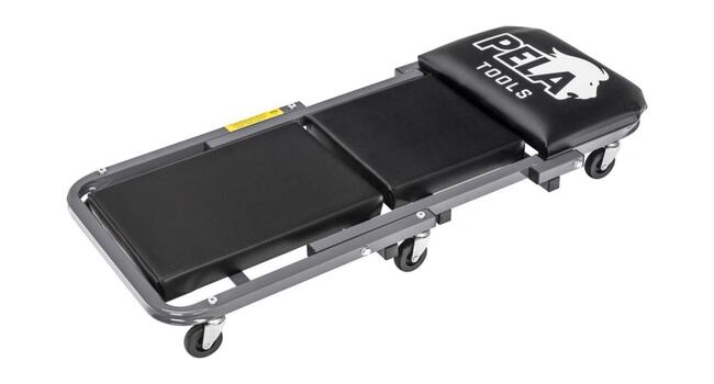 Käytännöllinen asennusalusta, joka voidaan taittaa mekaanikon jakkaraksi. Jauhemaalattu teräsrunko, pehmustettu keinonahkatyyny, kääntyvät pyörät, Ø60 mm. Koko: 1030x440x140 mm. Kantavuus 150 kg.
